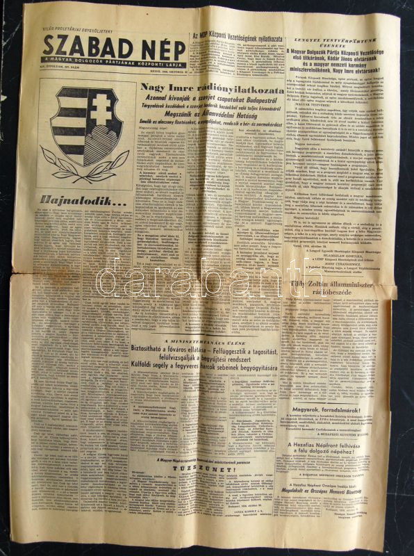 1956 A Szabad Nép október 29.-i,száma a forradalom híreivel. (egy szak... https://www.darabanth.com/hu/138-Gyorsarveres/138.0/Festmeny-mutargy-papirregiseg-egyeb/Nyomtatvanyok~400030/1956-A-Szabad-Nep-oktober-29-i-szama-a-forradalom-hireivel-egy-szakadassal~II392198