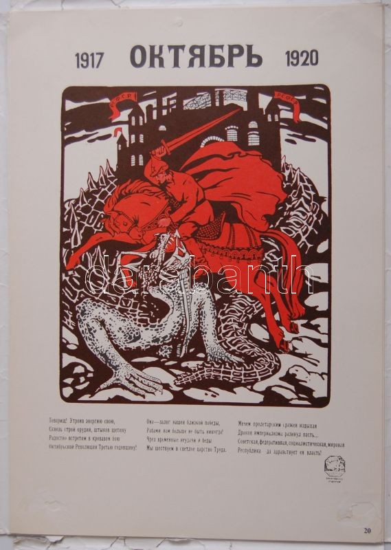 1977. Győrffy Sándor: A nagy forradalom plakátjai címmel megjelent, az orosz forradalom 60. évfordulóján kiadott 24/17db (hiányos) plakáttal kiegészített színes nyomtatvány, külső borítója sérült
