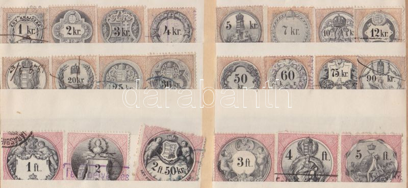 Leírás: 1880 jan. 1. Az okmánybélyeg sor 22 db klf értéke