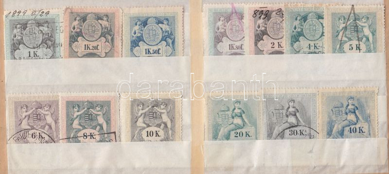 Leírás: 1898 II. kiadás Az okmánybélyeg sor 13 db klf K-s értéke