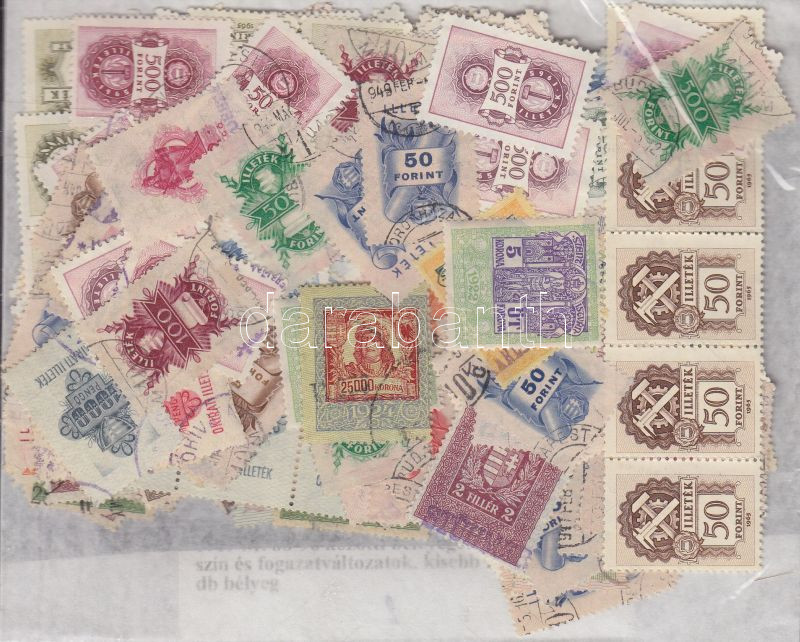 Leírás: 200 db okmánybélyeg, közte több ritka darab is ömlesztve