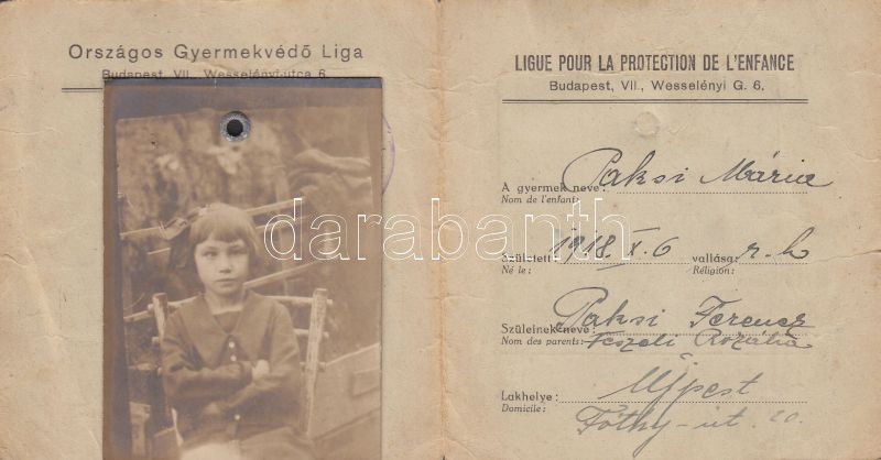 1925 Gyermekvédő liga fényképes személyazonossági igazolvány https://www.darabanth.com/hu/138-Gyorsarveres/138.0/Festmeny-mutargy-papirregiseg-egyeb/Okmanyok~400018/1925-Gyermekvedo-liga-fenykepes-szemelyazonossagi-igazolvany~II400704