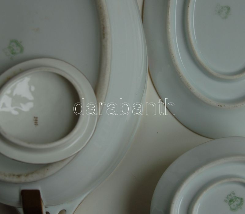 cca 1807-93 Ch. Ahrenfeld jelzéssel ellátott kézzel festett és aranyozott porcelán leveses, húsos és szószos tál (sérült) / Ahrenfeld handgolded chinaware soup-sauce bowl and meat dish (damaged)