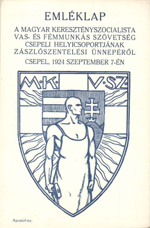 Association of Hungarian Christian Socialist Steelworkers Csepel, comm... https://www.darabanth.com/hu/138-Gyorsarveres/138.0/Kepeslapok/Egyeb~400081/Association-of-Hungarian-Christian-Socialist-Steelworkers-Csepel-commemorative-card~II400610