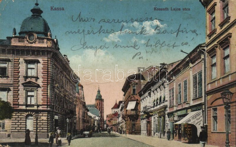 Kassa Kossuth street with the textile dyer shop of Gyula Bradovka (Rb) https://www.darabanth.com/hu/138-Gyorsarveres/138.0/Kepeslapok/Felvidek~400007/Kassa-Kossuth-street-with-the-textile-dyer-shop-of-Gyula-Bradovka-Rb~II400686