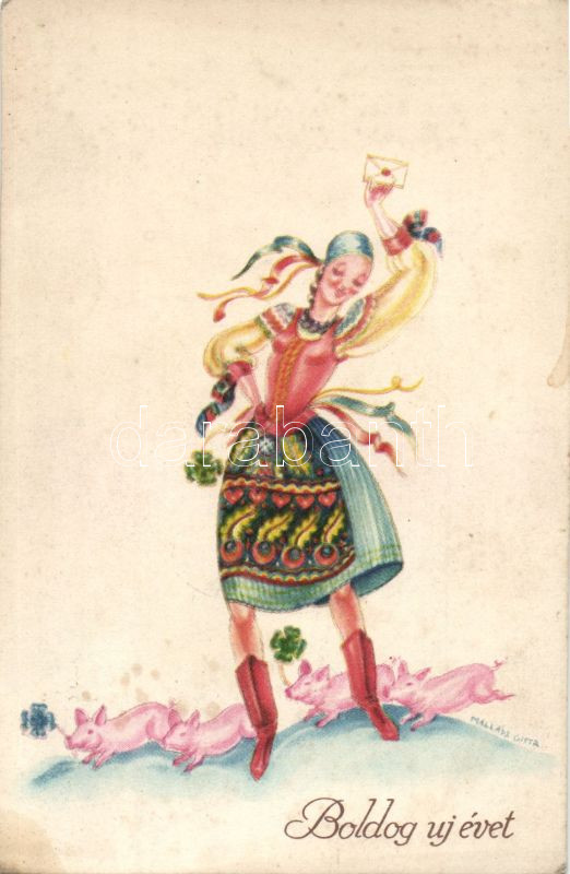 Hungarian folklore, New Year s: Mallász Gitta https://www.darabanth.com/hu/138-Gyorsarveres/138.0/Kepeslapok/Folklor~400083/Hungarian-folklore-New-Year-s-Mallasz-Gitta~II400535