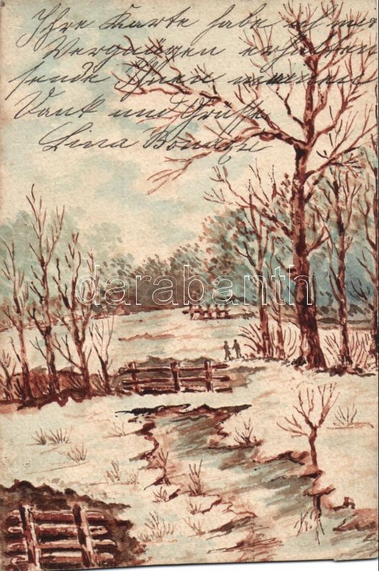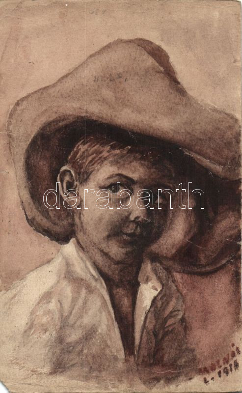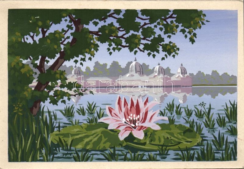 Leírás: 21 db kézzel készített képeslap vegyes minőségben; Budapest látképek, virágok és portrék / 21 hand-painted postcards