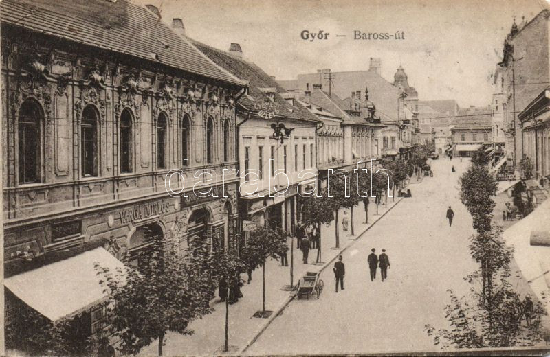 Győr Baross út Varga Miklós és Armuth Sándor üzleteivel https://www.darabanth.com/hu/138-Gyorsarveres/138.0/Kepeslapok/Magyarorszag~400005/Gyor-Baross-ut-Varga-Miklos-es-Armuth-Sandor-uzleteivel~II401016