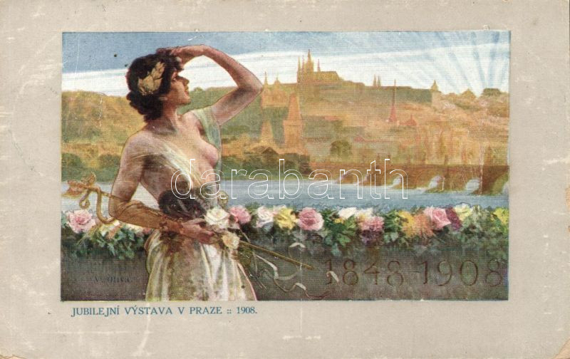 Jubilee Exhibition Praha, 1908, Art Nouveau s: V. Oliva (Rb) https://www.darabanth.com/hu/138-Gyorsarveres/138.0/Kepeslapok/Reklam~400098/Jubilee-Exhibition-Praha-1908-Art-Nouveau-s-V-Oliva-Rb~II399190