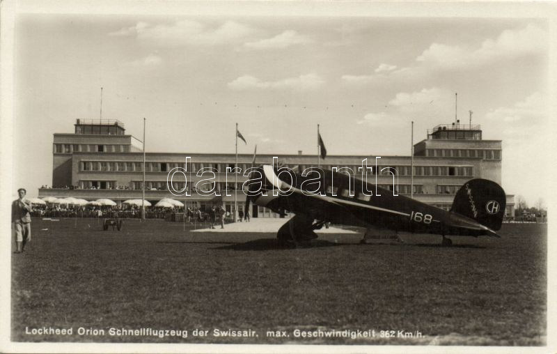 Lockheed Orion aeroplane, Swissair, at the München airport https://www.darabanth.com/hu/138-Gyorsarveres/138.0/Kepeslapok/Repulo~400099/Lockheed-Orion-aeroplane-Swissair-at-the-Munchen-airport~II400548
