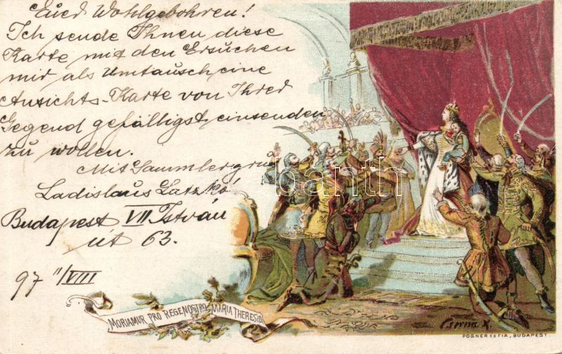 1897 Maria Theresa, Ezredéves Országos Kiállítás Ga. litho s: Cserna https://www.darabanth.com/hu/138-Gyorsarveres/138.0/Kepeslapok/Uralkodo-Politikus~400103/1897-Maria-Theresa-Ezredeves-Orszagos-Kiallitas-Ga-litho-s-Cserna~II398970