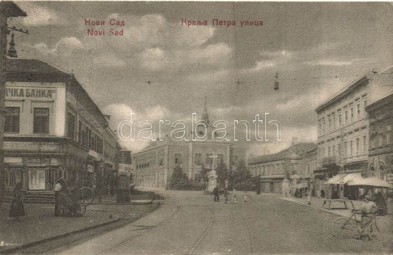 Újvidék Peter street with bank https://www.darabanth.com/hu/138-Gyorsarveres/138.0/Kepeslapok/Vajdasag~400010/Ujvidek-Peter-street-with-bank~II402533