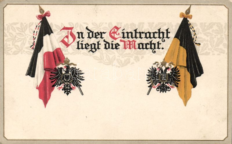 Viribus Unitis flags, propaganda litho https://www.darabanth.com/hu/138-Gyorsarveres/138.0/Kepeslapok/Zaszlo-Cimer~400107/Viribus-Unitis-flags-propaganda-litho~II403270