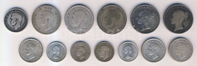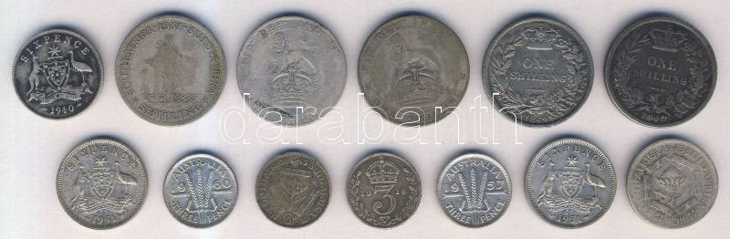 Ausztrália 1940-51. 6p Ag (3x) + 1957-60. 3p Ag (2x) + Dél-Afrika 1945. 3p Ag + 1943. 6p Ag + 1937. 1Sh Ag + Nagy-Britannia 1842. 1Sh Ag + 1869. 1Sh Ag + 1916. 3p Ag + 1924. 1Sh Ag (2x) T:2,3