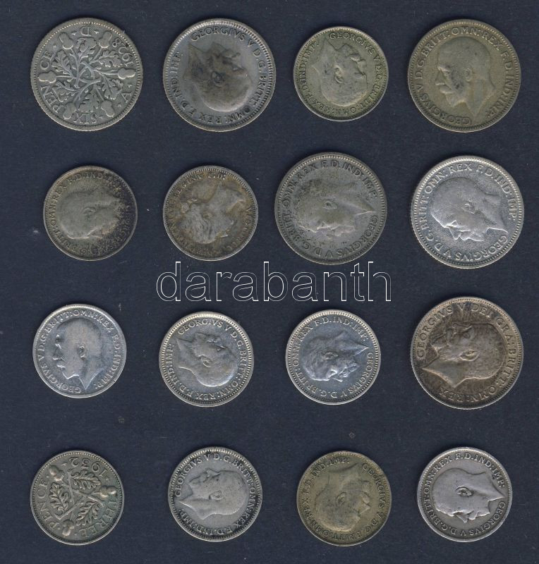 Leírás: Nagy-Britannia 1871-22. 3p Ag (6x) + 1931-36. 3p Ag (4x) + 1911. 6p Ag + 1928-31. 6p Ag (5x) T:2,3