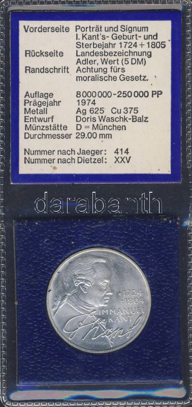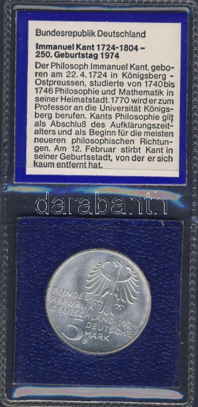 Németország/NSZK 1974. 5M Ag "Kant" tanúsítvánnyal T:1- https://www.darabanth.com/hu/138-Gyorsarveres/138.0/Numizmatika/Kulfoldi-fem-es-ezustpenzek~400121/NemetorszagNSZK-1974-5M-Ag-Kant-tanusitvannyal-T1-~II400804