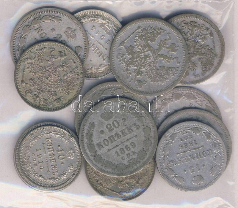 Leírás: Oroszország 1868. 15k Ag + 1869. 20k Ag (3x) + 1874. 20k Ag + 1879. 20k Ag (2x) + 1886. 15k Ag + 1912. 5k Ag + 1914. 10k Ag + 15k Ag (5x) T:2,3