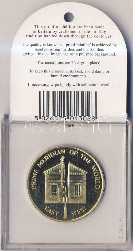 Leírás: Anglia 2000. Greenwich / A pénzverés hagyományának emléket állító aranyozott emlékérem, eredeti tokban, tanúsítvánnyal T:PP