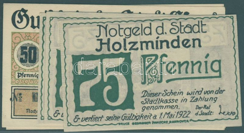 Német Birodalom/Weimari Köztársaság/ Holzminden 1922. 25Pf + 50Pf + 75... https://www.darabanth.com/hu/138-Gyorsarveres/138.0/Numizmatika/Magyar-es-kulfoldi-papir-es-fem-szuksegpenzek-penzhelyettesitok-~400115/Nemet-BirodalomWeimari-Koztarsasag-Holzminden-1922-25Pf-plus-50Pf-plus-75Pf-3klf-db-teljes-sor-TI~II403769