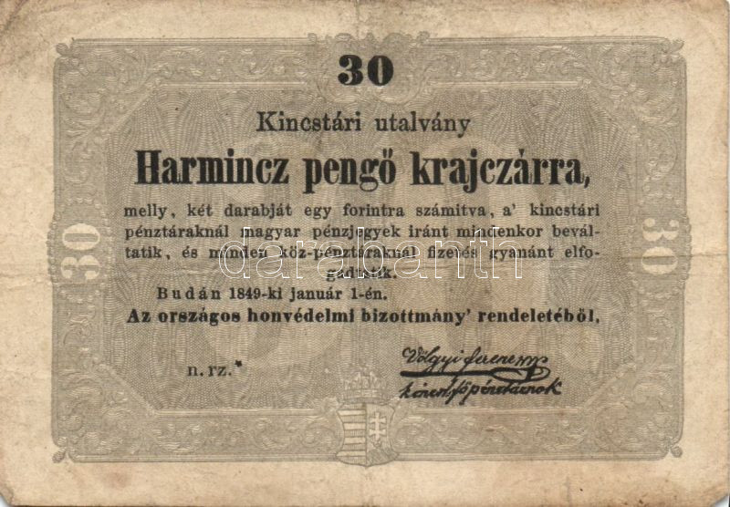 Leírás: 1849. 30kr "Kossuth-bankó" "*" T:III
