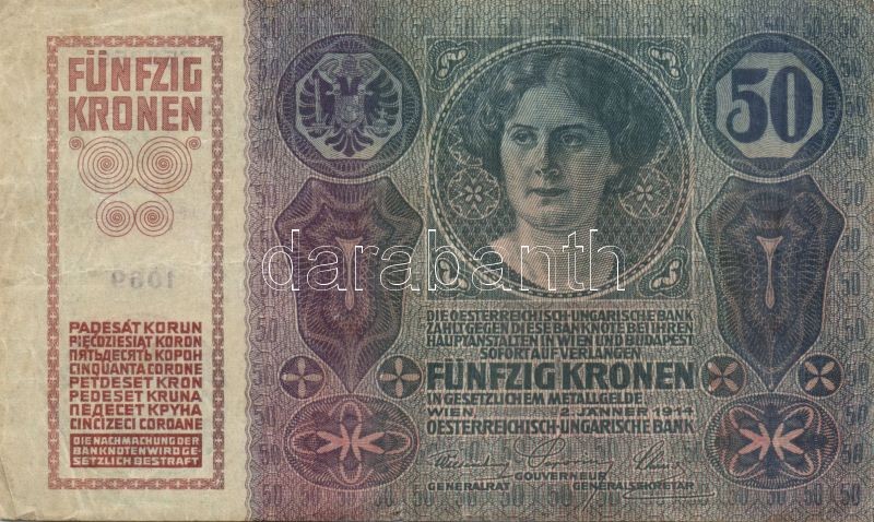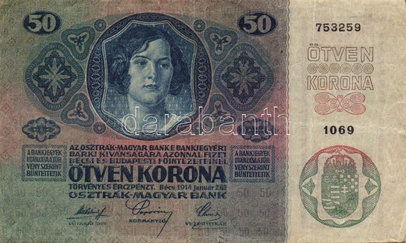 1914. 50K főtípus, felülbélyegzés nélkül T:III https://www.darabanth.com/hu/138-Gyorsarveres/138.0/Numizmatika/Magyar-es-magyar-vonatkozasu-bankjegyek~400116/1914-50K-fotipus-felulbelyegzes-nelkul-TIII~II403023
