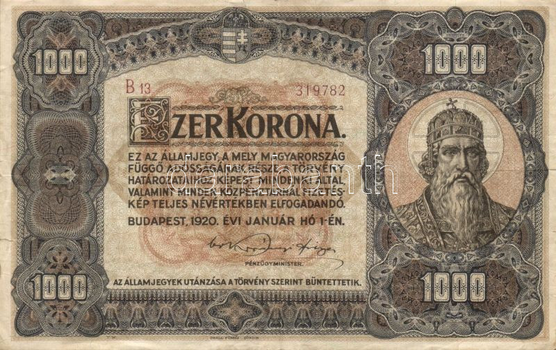 1920. 1000K "Orell Füssli Zürich" T:III https://www.darabanth.com/hu/138-Gyorsarveres/138.0/Numizmatika/Magyar-es-magyar-vonatkozasu-bankjegyek~400116/1920-1000K-Orell-Fussli-Zurich-TIII~II403068