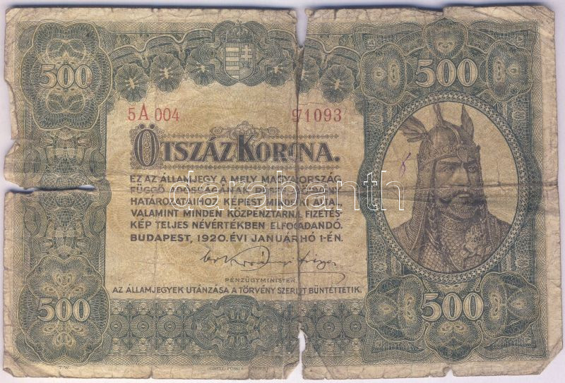 https://www.darabanth.com/hu/138-Gyorsarveres/138.0/Numizmatika/Magyar-es-magyar-vonatkozasu-bankjegyek~400116/1920-500K-TV~II400079