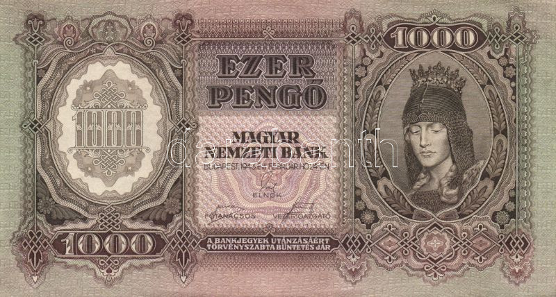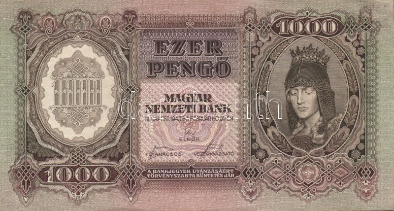 Leírás: 1943. 1000P (3x) egymásutáni sorszámmal T:I-