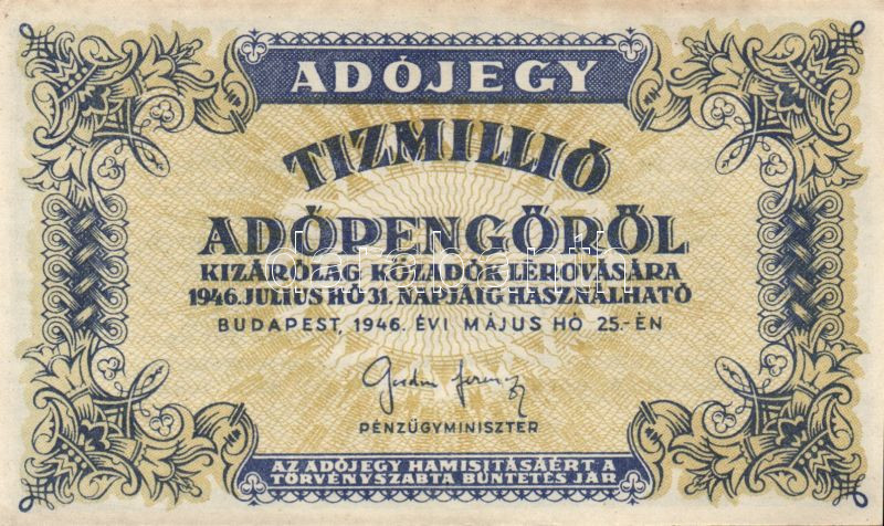 Leírás: 1946. 10.000.000AP T:II+ hajtatlan, kicsit foltos