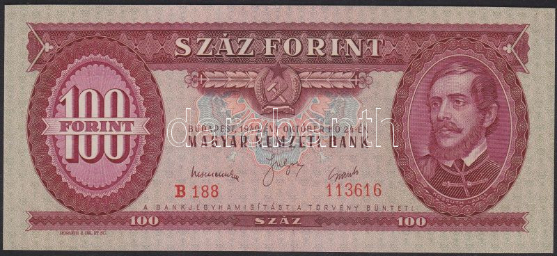 1949. 100Ft enyhe ferde hátlapi nyomat T:I https://www.darabanth.com/hu/138-Gyorsarveres/138.0/Numizmatika/Magyar-es-magyar-vonatkozasu-bankjegyek~400116/1949-100Ft-enyhe-ferde-hatlapi-nyomat-TI~II403362