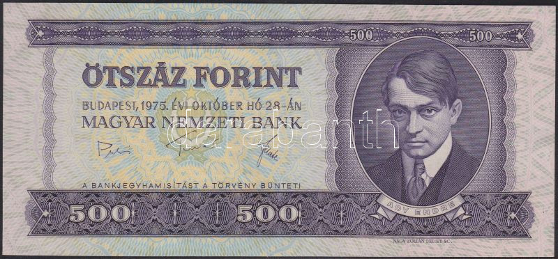 Leírás: 1975. 500Ft hátoldali kis festékfoltokkal T:I