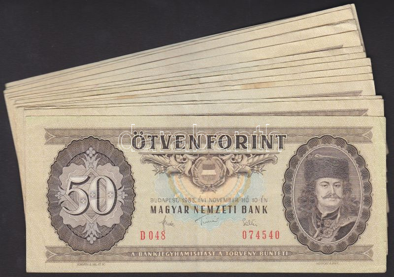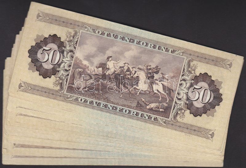 1983. 50Ft (15x) T:II,III https://www.darabanth.com/hu/138-Gyorsarveres/138.0/Numizmatika/Magyar-es-magyar-vonatkozasu-bankjegyek~400116/1983-50Ft-15x-TII-III~II384312