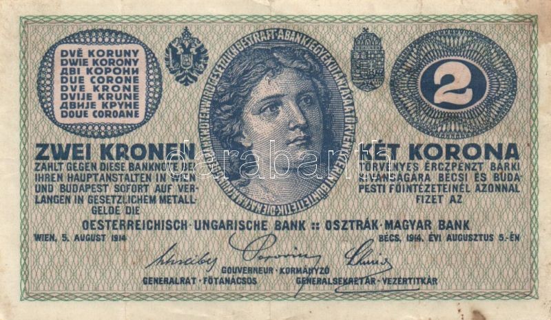 Ausztria/Osztrák-magyar Bank 1914. 2K (10x) T:III,III-,IV https://www.darabanth.com/hu/138-Gyorsarveres/138.0/Numizmatika/Magyar-es-magyar-vonatkozasu-bankjegyek~400116/AusztriaOsztrak-magyar-Bank-1914-2K-10x-TIII-III-IV~II354471