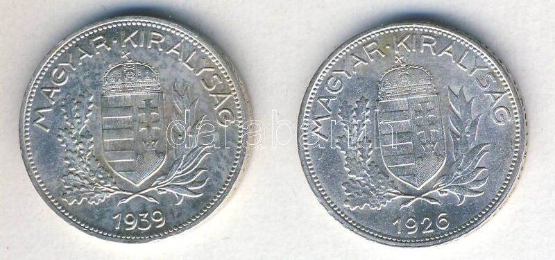 1926,1939. 1P Ag (2x) T:2+,2 https://www.darabanth.com/hu/138-Gyorsarveres/138.0/Numizmatika/Magyar-fem-es-ezustpenzek~400117/1926-1939-1P-Ag-2x-T2plus-2~II399541