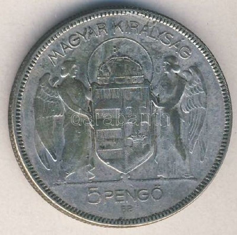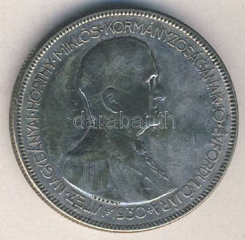Leírás: 1930. 5P Ag "Horthy jobbra" T:3