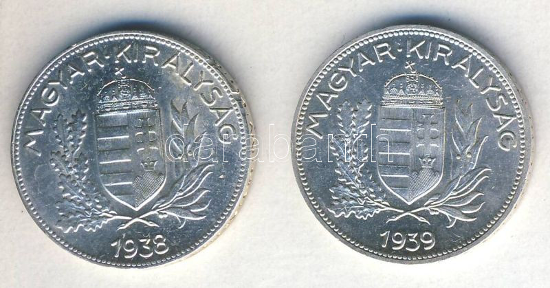 1938,1939. 1P Ag (2x) T:2+ https://www.darabanth.com/hu/138-Gyorsarveres/138.0/Numizmatika/Magyar-fem-es-ezustpenzek~400117/1938-1939-1P-Ag-2x-T2plus~II399534