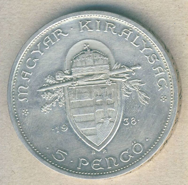 1938. 5P "Szent István" Ag T:2- apró ph. https://www.darabanth.com/hu/138-Gyorsarveres/138.0/Numizmatika/Magyar-fem-es-ezustpenzek~400117/1938-5P-Szent-Istvan-Ag-T2-apro-ph~II400719