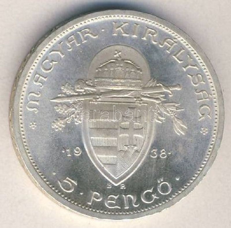 Leírás: 1938. 5P "Szent István" Ag T:2- apró ph.
