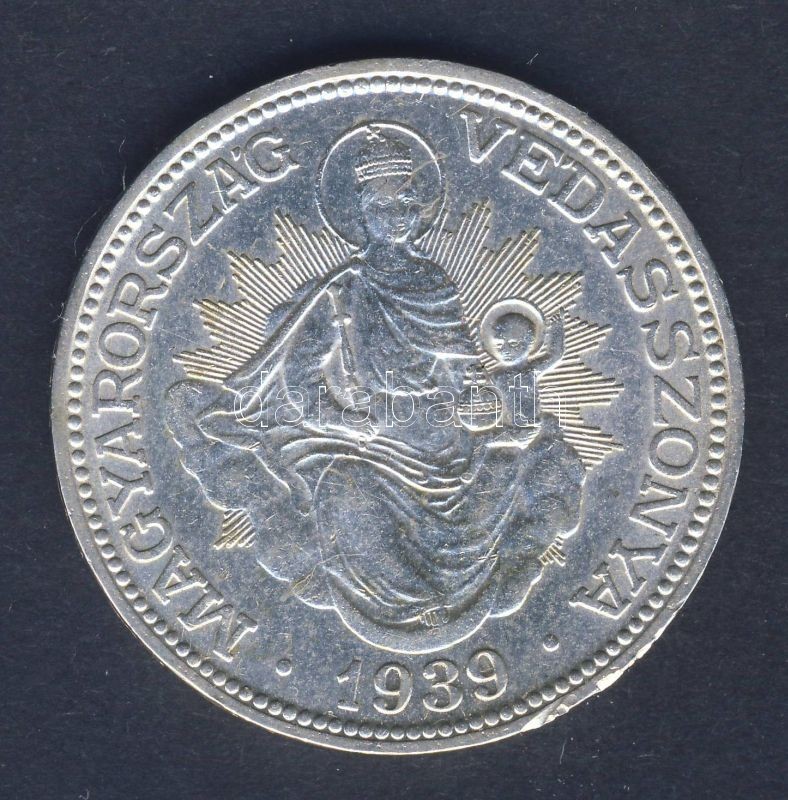 1939. 2P Ag "Madonna" T:2/2- ph. https://www.darabanth.com/hu/138-Gyorsarveres/138.0/Numizmatika/Magyar-fem-es-ezustpenzek~400117/1939-2P-Ag-Madonna-T22-ph~II399644