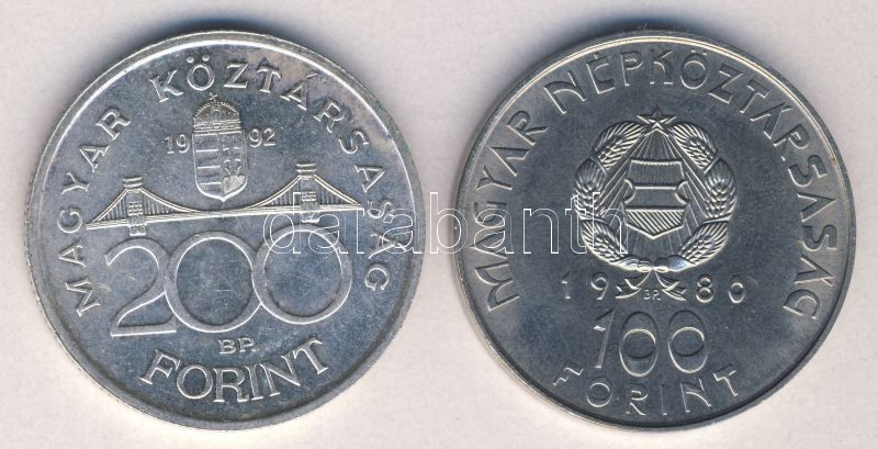 Leírás: 1980. 100Ft "Szovjet-magyar közös űrrepülés" T:BU + 1992. 200Ft Ag "MNB" T:2+