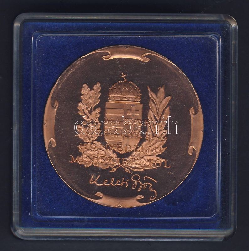 Leírás: 1996. A Magyar Köztársaság Honvédelmi Miniszterétől, Keleti Györgytől adományozott fém emlékérem eredeti adományozói tokban. Szign: Bozó T:1
