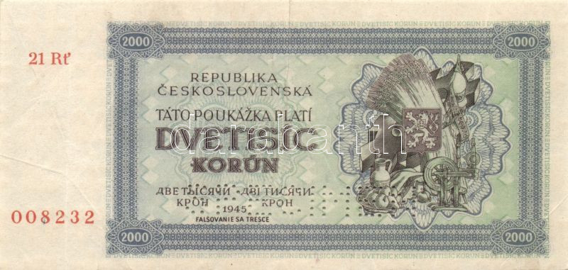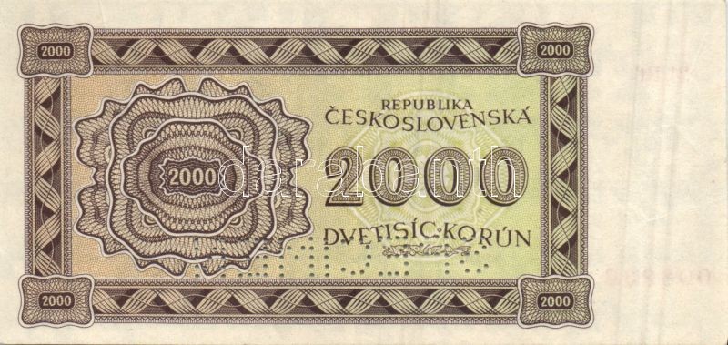 Csehszlovákia 1945 2000K "specimen" T:III+ https://www.darabanth.com/hu/139-Gyorsarveres/139.0/Numizmatika/Kulfoldi-bankjegyek~10012/Csehszlovakia-1945-2000K-specimen-TIIIplus~II406422