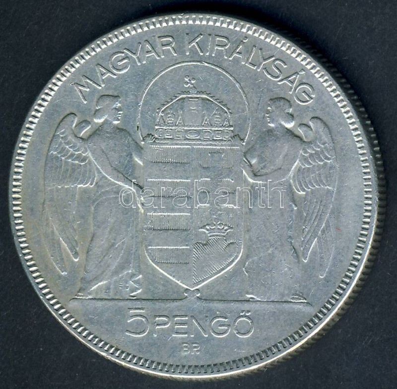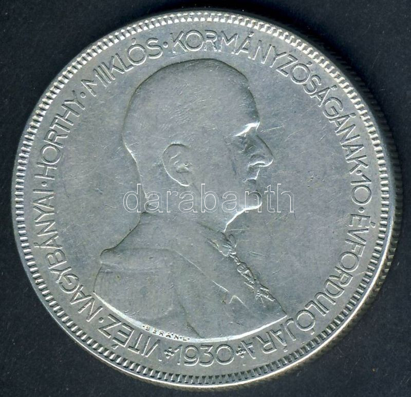 Leírás: 1930. 5P Ag "Horthy jobbra" T:3
