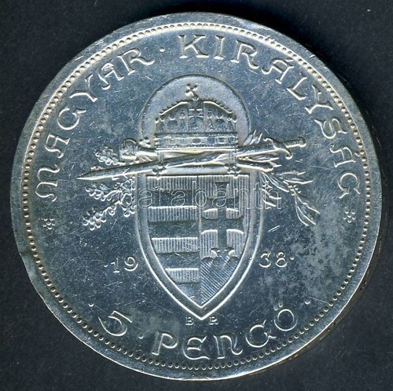 1938. 5P "Szent István" Ag T:2- ph. https://www.darabanth.com/hu/139-Gyorsarveres/139.0/Numizmatika/Magyar-fem-es-ezustpenzek~10009/1938-5P-Szent-Istvan-Ag-T2-ph~II406623