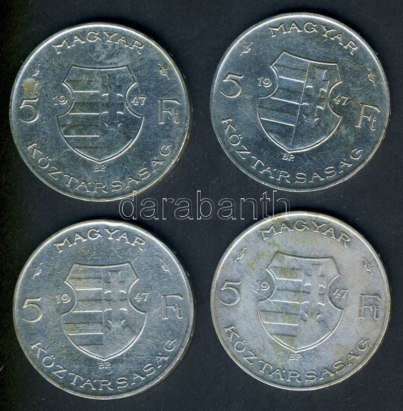Leírás: 1947. 5Ft Ag (2x) "Kossuth" T:2-,3+ ph.