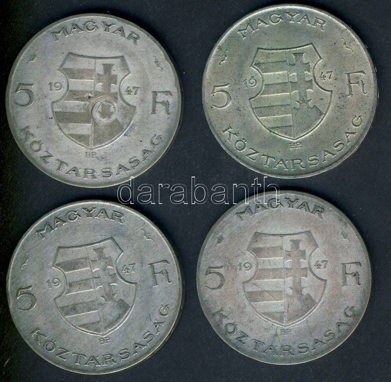 Leírás: 1947. 5Ft Ag (4x) "Kossuth" T:2-,3 ph.
