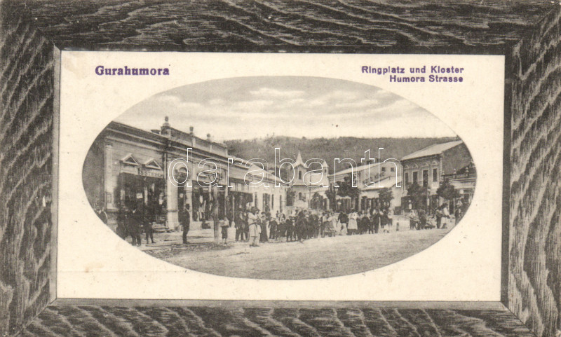 Leírás: Gurahumora main square, Hotel König, the shop of S. Stieber