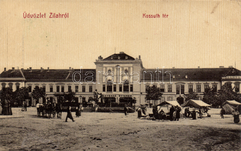 Zilah Kossuth square, Café and restaurant, market (EK) https://www.darabanth.com/hu/14-Nagyaukcio/14.1/Magyar-kepeslapok/Erdely~4344/Zilah-Kossuth-square-Cafe-and-restaurant-market-EK~II535773