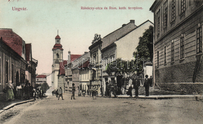 Ungvár Rákóczi street, Catholic church https://www.darabanth.com/hu/14-Nagyaukcio/14.1/Magyar-kepeslapok/Karpatalja~4346/Ungvar-Rakoczi-street-Catholic-church~II538076