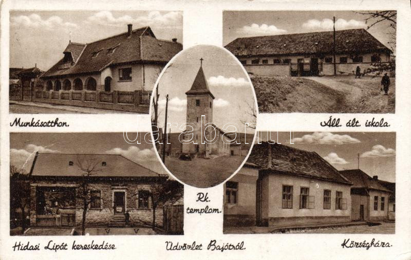 Leírás: Bajót munkásotthonnal és Hidasi Lipót kereskedésével
